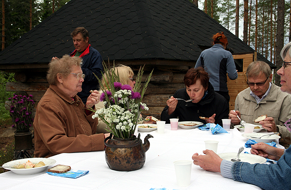 Ruokailu kodalla, lohisoppaa