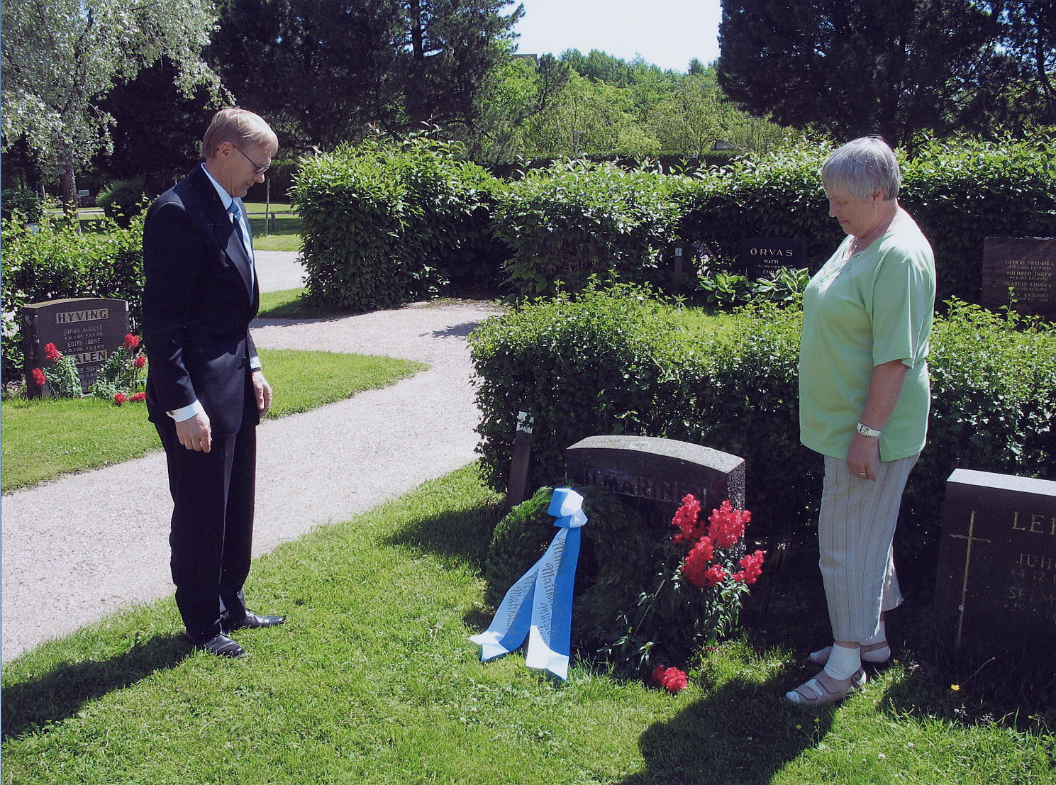 Heikki Matikainen ja Maire Karvinen "Lamerin Mikon" haudalla